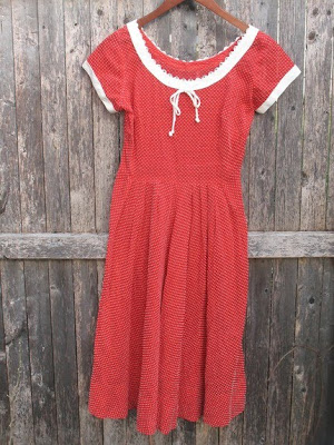 FiregypsyVintage. Lastly a steal of a deal, this 1940's sweetheart red crepe dress is in great condition and an even more romantic deal for $42 from